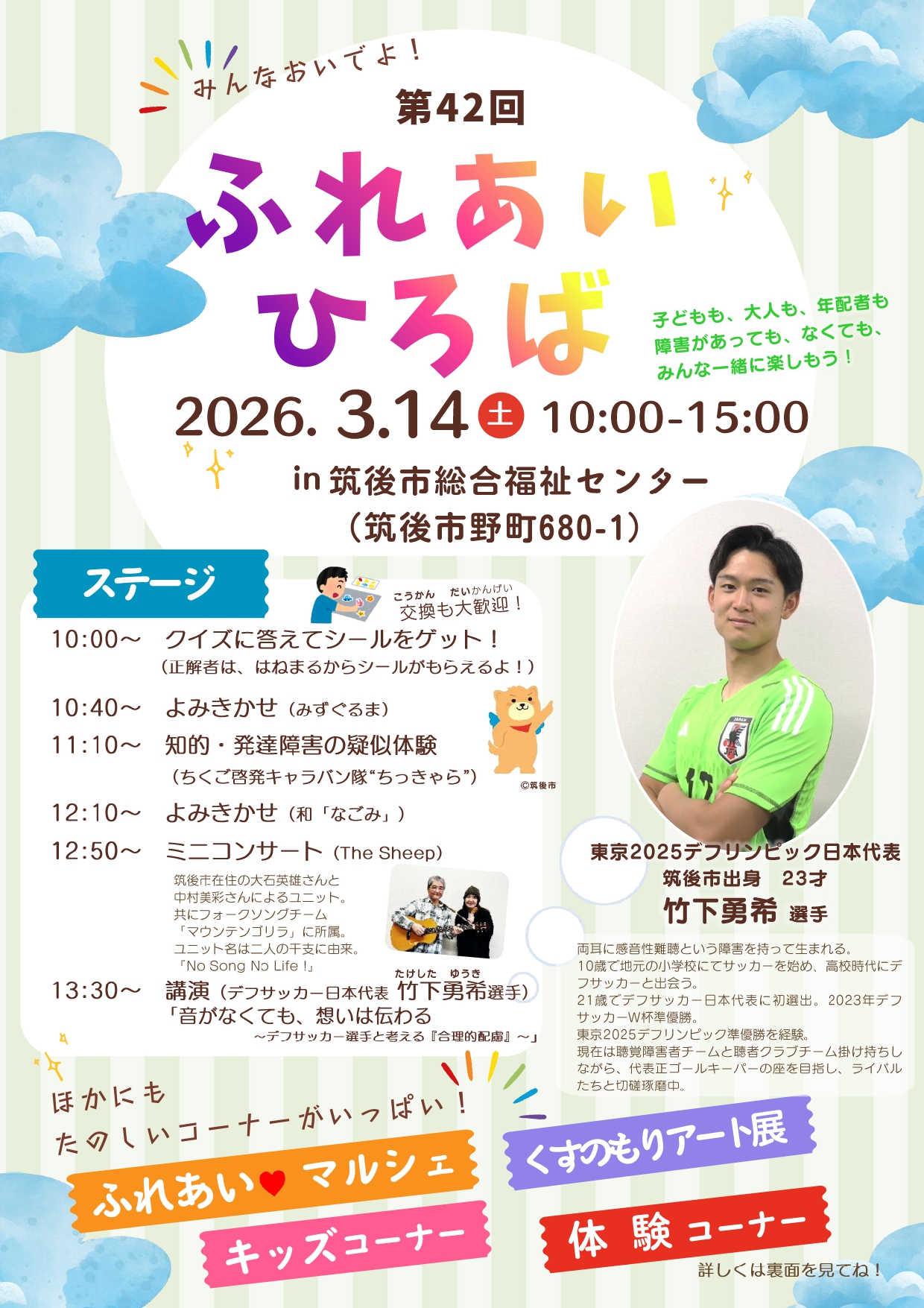ボランティア同士の交流や福祉課題の啓発を目的とし、筑後市ボランティア連絡協議会と協働し、 福祉の大イベント「ふれあいひろば」を毎年開催しています。