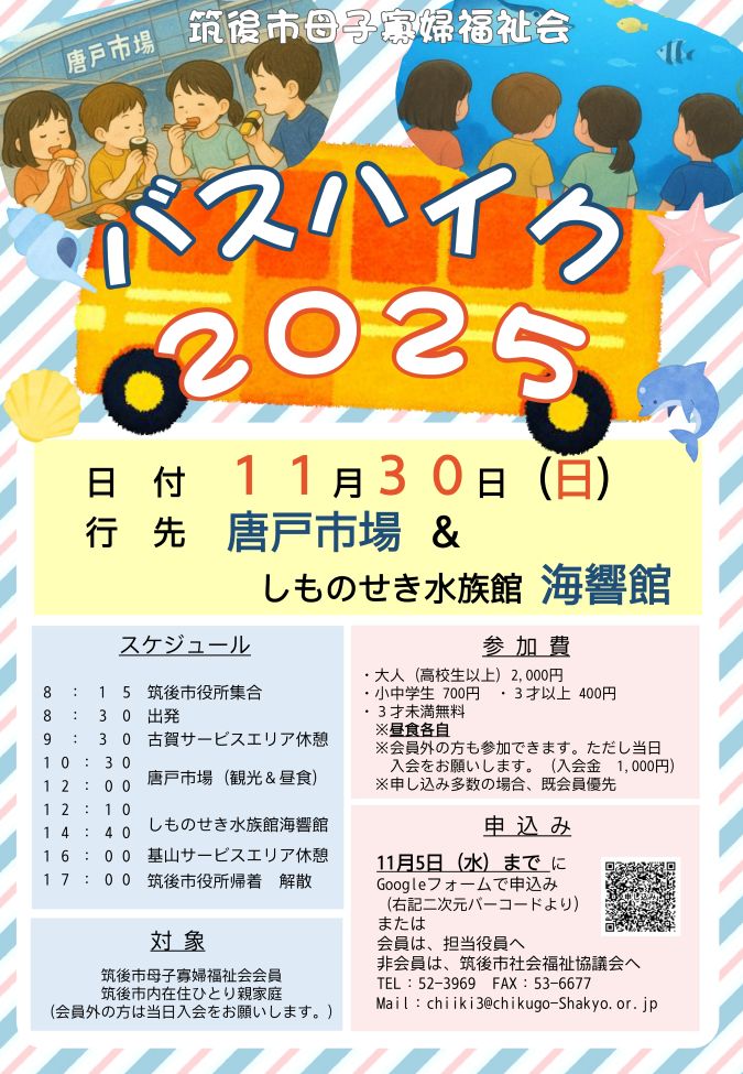 母子会に入会したら、ひとり親家庭では、子どもになかなか体験させることができないようなこと(バスハイクやクリスマス会など)を体験することができます。また、福祉制度などの情報をスムーズに手に入れることができますよ。 あなたのご入会お待ちしています。