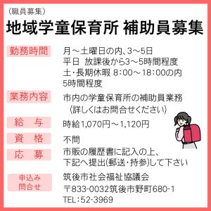 地域学童保育所 補助員募集のお知らせ